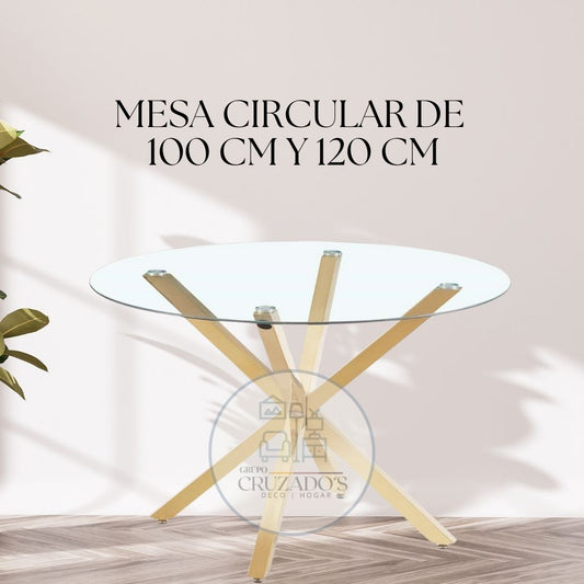 Mesa circular 100 cm PATAS DORADAS + sillas tulip
