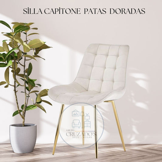 Mesa Dorada 130x80cm + Silla Capitoné Patas Dorada