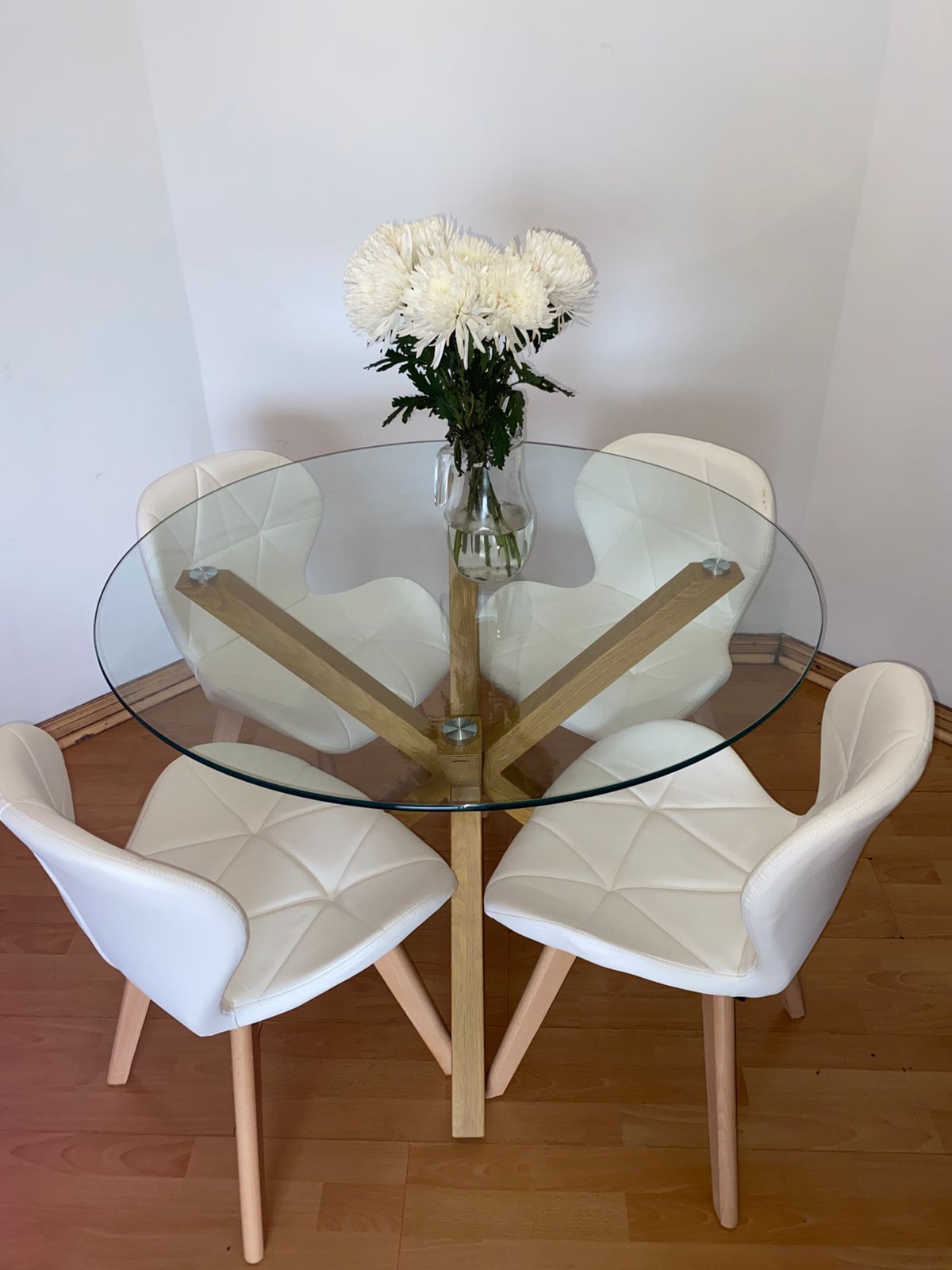 Simple, sofisticada y fácil de armar (Además de elegante y duradera) son las principales características que reúne esta espectacular mesa de base exótica y fuera de lo común en estilo asterisco. Sirve para 6 y hasta 7 puestos, se limpia únicamente con paño húmedo. Cubierta reforzada y diseñada para ser duradera en el tiempo. Diseño simple y minimalista. Sus elegantes terminaciones en vidrio templado de 6MM con bases de acero inoxidable en terminación de madera con beta resaltada, la destacan sobre el resto y hacen de esta, la mesa idea ideal para tu hogar u oficina.