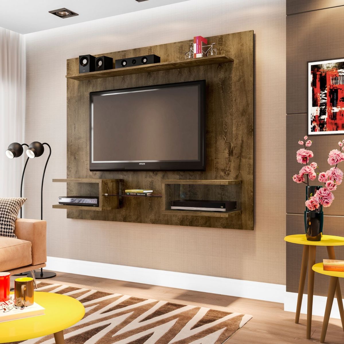 El panel atlas para tv de hasta 55 pulgadas tiene un diseño moderno e innovador que renovará totalmente el ambiente de su sala de estar, haciéndolo aún más atractivo. Tiene 1 repisa superior, 2 nichos y 1 repisa de vidrio, que son perfectos para acomodar equipos electrónicos, objetos u otros materiales decorativos. Su estructura está elaborada en MDP de 15 mm, un material de óptima calidad y máxima durabilidad. Pintura de superficie en barniz de poliéster semibrillante secado con UV e impresión láser, una tecnología que le da a los muebles una impresión de alta definición que reproduce perfectamente el grano de madera, produce colores más cercanos a los naturales y un acabado de bordes con cintas de papel.